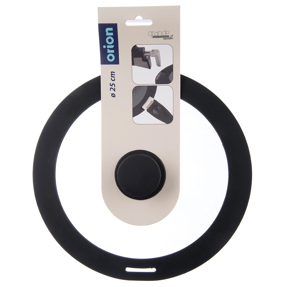 Pružný silikon kopíruje okraj nádoby a zajišťuje stabilitu, méně rozstřiků a lepší udržení tepla i vlhkosti na nádobí o průměru 24 cm.