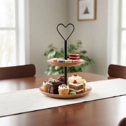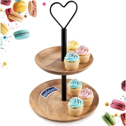 Elegantní mísa ve stylu loft kombinuje přírodní krásu mangového dřeva s černým kovem a stane se dekorací každého stolu. Dvě úrovně umožní efektně vystavit cupcakes, sušenky, makronky, ovoce, kanapky i předkrmy – perfektní pro oslavy, sweet bary i každodenní stolování.