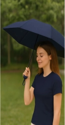 Kompaktní tmavě modrý deštník s průměrem 90 cm nabízí spolehlivou ochranu před deštěm i sluncem. Díky povrchové úpravě UV UPF 50+ efektivně blokuje škodlivé paprsky, je lehký, skládací a snadno se vejde do kabelky či batohu. Pohodlná kulatá rukojeť a praktické pouzdro usnadňují každodenní nošení.