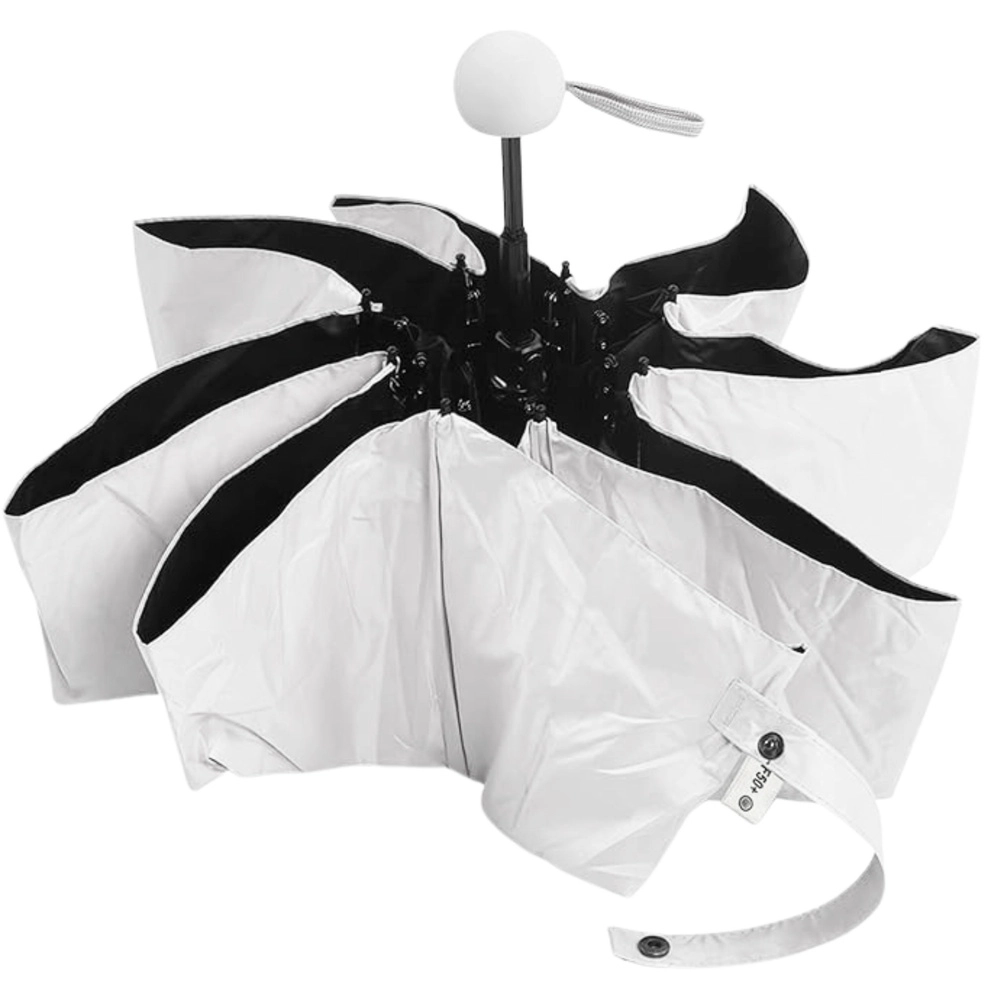 Stylový šedý deštník kombinuje elegantní vzhled a praktickou funkčnost. Díky povrchové úpravě UPF 50+ účinně blokuje škodlivé UV záření, zatímco nepromokavý polyester chrání v dešti. Lehké provedení a složitelná konstrukce zaručují, že se snadno vejde do tašky a máte ho vždy po ruce.
