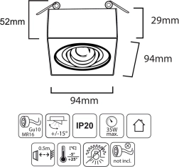 Toto kvalitní bodové stropní svítidlo je vyrobené z odolného hliníku a díky svému minimalistickému vzhledu se skvěle hodí do moderních interiérů. Je určeno pro podhledovou montáž a kompatibilní s paticemi MR16 nebo GU10 (zdroj není součástí balení).