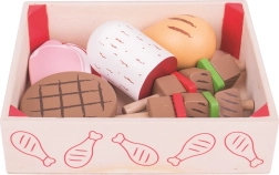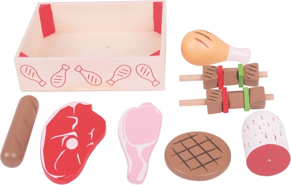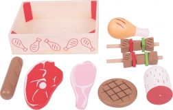 - Realistická sada dřevěných uzenin a masa pro dětské kuchyňky
