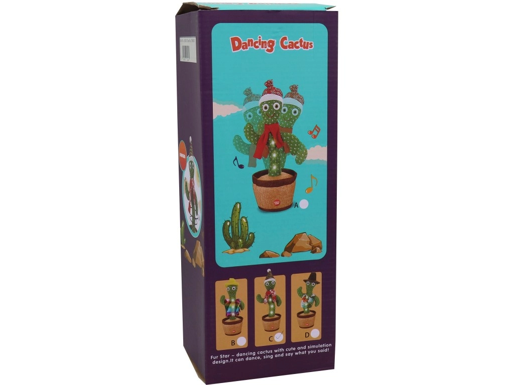 Tento veselý kaktus je ideální společník pro chvíle zábavy. Po zapnutí se roztančí, rozsvítí a dokáže opakovat vše, co slyší. Díky jednoduchému ovládání je vhodný pro děti od 3 let a skvěle se hodí jako originální dárek.
