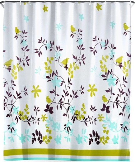 Univerzální rozměr 180 × 180 cm perfektně pasuje k většině sprchových koutů a van. Poloprůhledné provedení s dekorativním potiskem listů a ptáků přidá prostoru svěžest a vizuální lehkost.