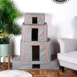Maximalizujte prostor ve skříni i pod postelí s prostorným úložným vakem o objemu 100 litrů. Odolná polyesterová tkanina v šedém melíru a kvalitní dvojité zipy zajistí bezpečné uložení ložního prádla, sezónního oblečení či textilií. Transparentní okénka umožní rychle zkontrolovat obsah bez otevírání.