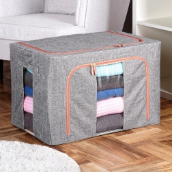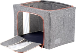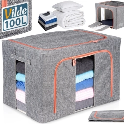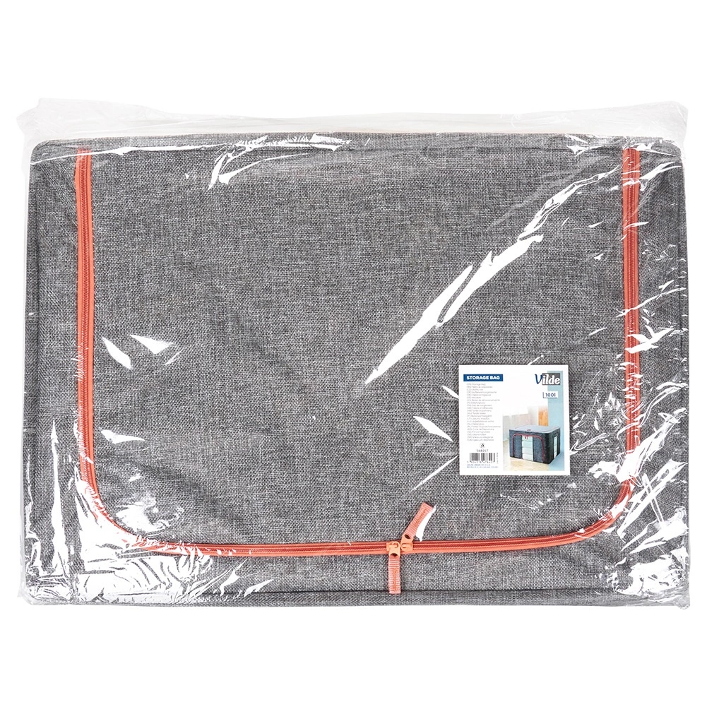 Praktický úložný vak na povlečení, deky, polštáře i oblečení s objemem 100 l a rozměry 60 × 42 × 40 cm. Chrání před vlhkostí, prachem a škůdci, má průhledná okénka, dvojité zipy shora i z boku, kovové výztuhy pro stabilitu a pevné boční úchyty pro snadné přenášení. Ideální do skříně i pod postel.