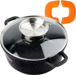 Litý hliník s granitovou nepřilnavou vrstvou umožňuje vaření s minimem tuku a usnadňuje čištění, přičemž zajišťuje rovnoměrnou distribuci tepla.
