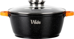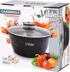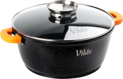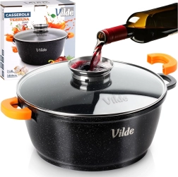 Objevte všestranný hrnec VILDE z linie TERRUNA AROMA, ideální pro každodenní vaření. Díky masivnímu hliníkovému odlitku s nepřilnavou granitovou vrstvou připravíte polévky, guláše, dušená jídla i zapečené pokrmy šetrně a rovnoměrně. Skleněná poklice s velkým úchytem a praktickým dávkovačem umožňuje dolévat vodu, víno či jiné tekuté koření bez zvedání poklice.