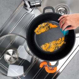 Granitový povrch omezuje připékání a usnadňuje čištění. Hrnec lze mýt v myčce a zvládne každodenní provoz bez námahy.