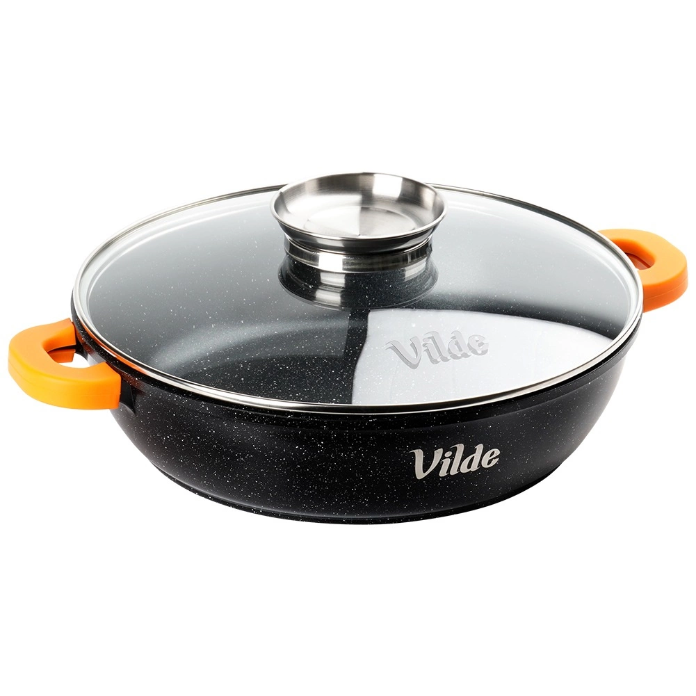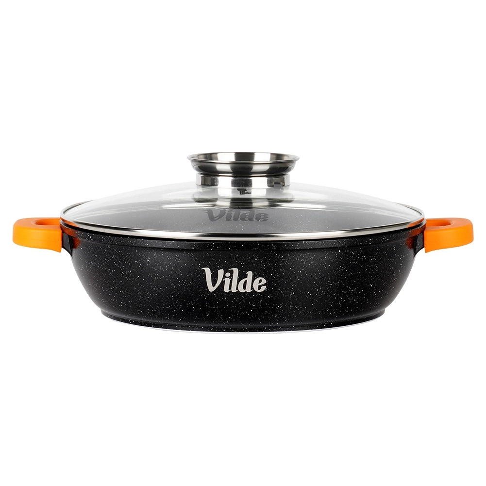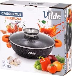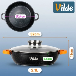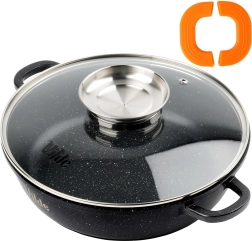 Praktická hluboká pánev o objemu 2,1 l se skleněnou poklicí s dávkovačem a nepřilnavým granitovým povrchem pro vaření s minimem oleje. Kompatibilní se všemi typy sporáků včetně indukce, vhodná i do trouby bez poklice do 200 °C. Součástí jsou protiskluzové silikonové návleky na úchyty pro bezpečné přenášení.