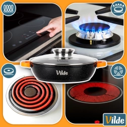 Silné vícevrstvé dno rovnoměrně rozvádí teplo a je vhodné pro plyn, elektřinu, sklokeramiku i indukci.
