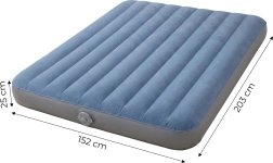 Nafukovací postel INTEX je spolehlivé řešení pro hosty, cestování i kempování. Odolná konstrukce z PVC s technologií Fiber‑Tech využívá stovky polyesterových vláken, která se časem nevytahují, takže matrace drží tvar i po opakovaném používání. Technologie Dura‑Beam zvyšuje tuhost a stabilitu, omezuje kolébání a poskytuje lepší podporu páteře.