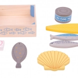 Tato dřevěná přepravka je plná čerstvých a zdravých ryb, jako je losos, konzerva tuňáka a krevety. Skvělý doplněk do dřevěné kuchyňky pro všechny malé kuchaře. Bigjigs Toys dřevěné jídlo podporuje poutavé učení o původu a přípravě jídla, zlepšuje dětskou motoriku a zároveň děti baví.