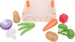 Dřevěná krabička se zeleninou od Bigjigs Toys je ideální pro malé kuchaře, kteří se učí o zdravé a vyvážené stravě a procvičují svou motoriku při hraní.