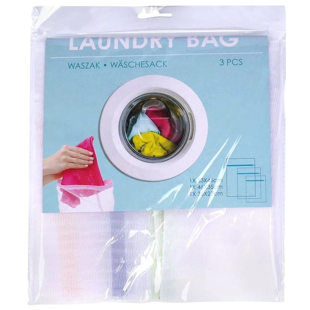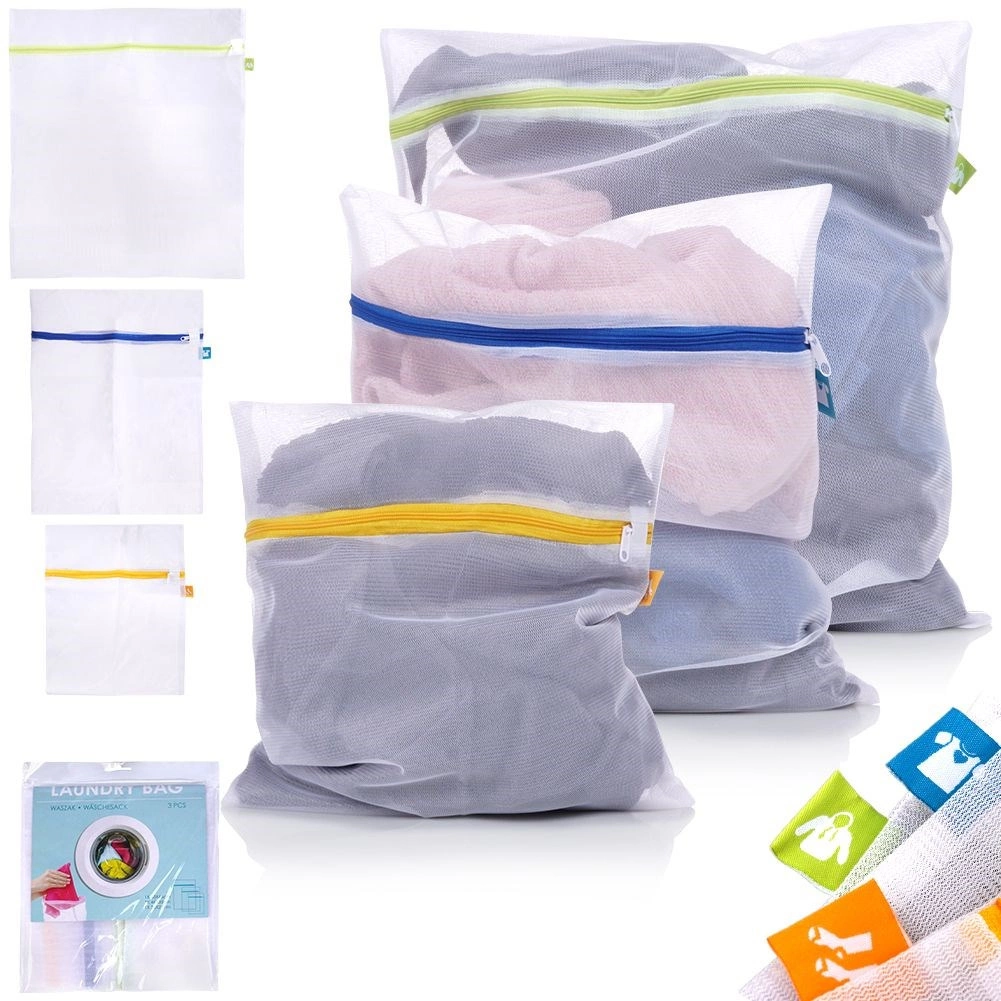 Praktická sada tří síťek na praní v různých velikostech chrání vaše jemné prádlo a spodní prádlo před poškozením a deformací. Díky jemné síťovině je zajištěn volný průtok vody a pracího prostředku, zatímco zipové uzavírání bezpečně udrží obsah uvnitř. Odolné polyesterové provedení rychle schne a vydrží dlouhá léta. Ideální pro jemné tkaniny, svetry, spodní prádlo či ponožky.