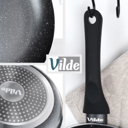 Pevné dno s rovnoměrným rozvodem tepla je vhodné pro plyn, elektřinu, sklokeramiku, halogen i indukci; pánve lze mýt v myčce.