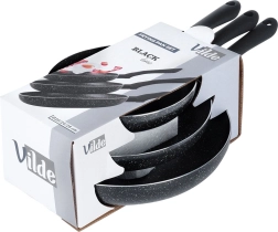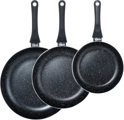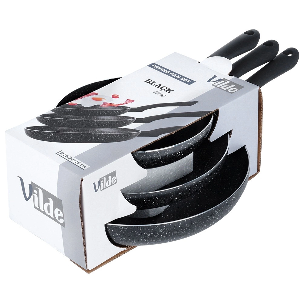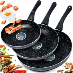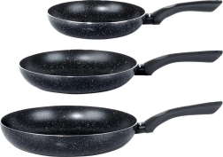 Sada tří pánví BLACK LINE kombinuje kvalitní odlévaný hliník pro rychlý rozvod tepla a odolnou nepřilnavou granitovou vrstvu pro zdravější vaření. Díky třem velikostem snadno připravíte vajíčka, zeleninu i steaky – vždy s rovnoměrnou distribucí tepla a snadným uvolněním pokrmu.
