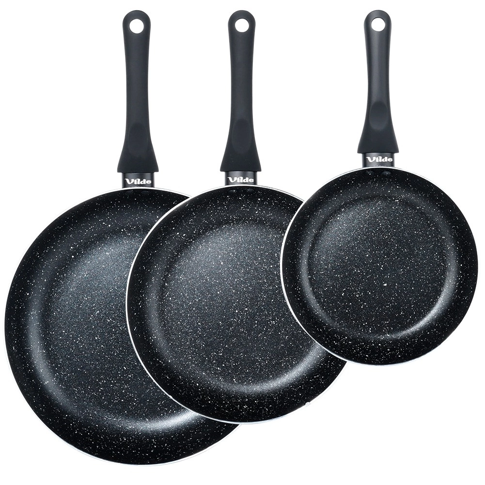 Průměry 20, 24 a 28 cm pokryjí vše od snídaně po večeři – od rychlého opečení vajec až po větší porce masa a zeleniny.