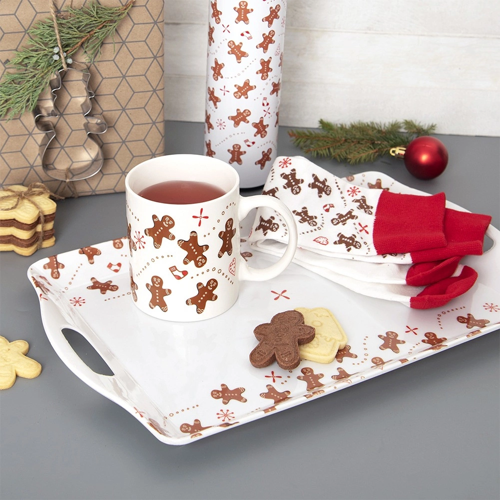 Udělejte si radost hřejivou zimní sadou, která spojuje keramický hrnek 350 ml a pohodlné ponožky s roztomilým motivem perníčkových panáčků. Bílý hrnek s červenohnědými akcenty krásně doplní sváteční atmosféru a skvěle poslouží na čaj, kávu i horkou čokoládu. Ponožky v bílo-červeném provedení jsou měkké, pružné a příjemné na nošení.