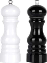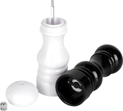 S touto elegantní sadou ručních mlýnků získáte vše, co potřebujete pro čerstvé dochucení pokrmů přímo u stolu. Keramický mechanismus zajišťuje dlouhou životnost a rovnoměrné mletí pepře, soli i dalších koření. Barevné provedení v černé a bílé usnadňuje okamžité rozlišení obsahu.