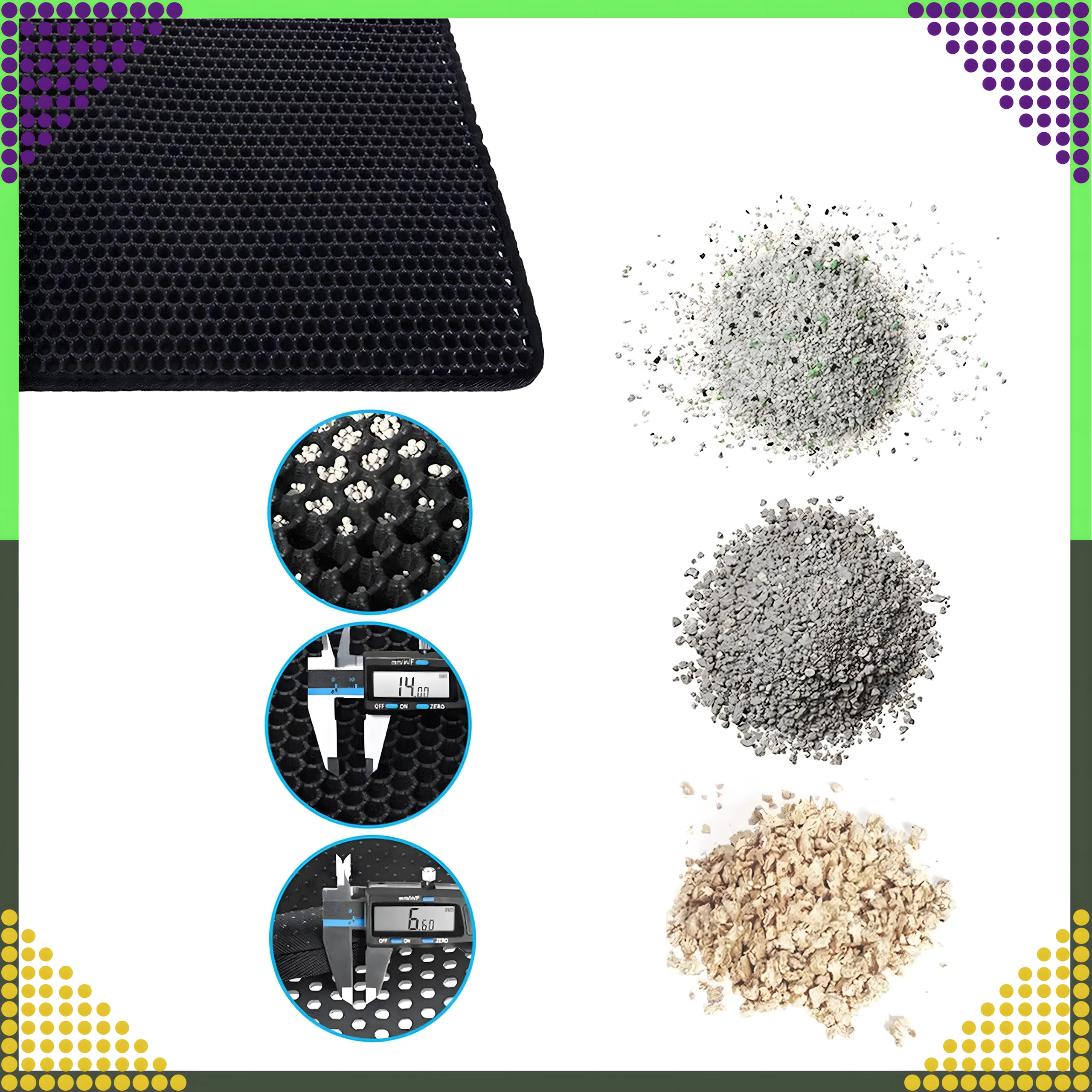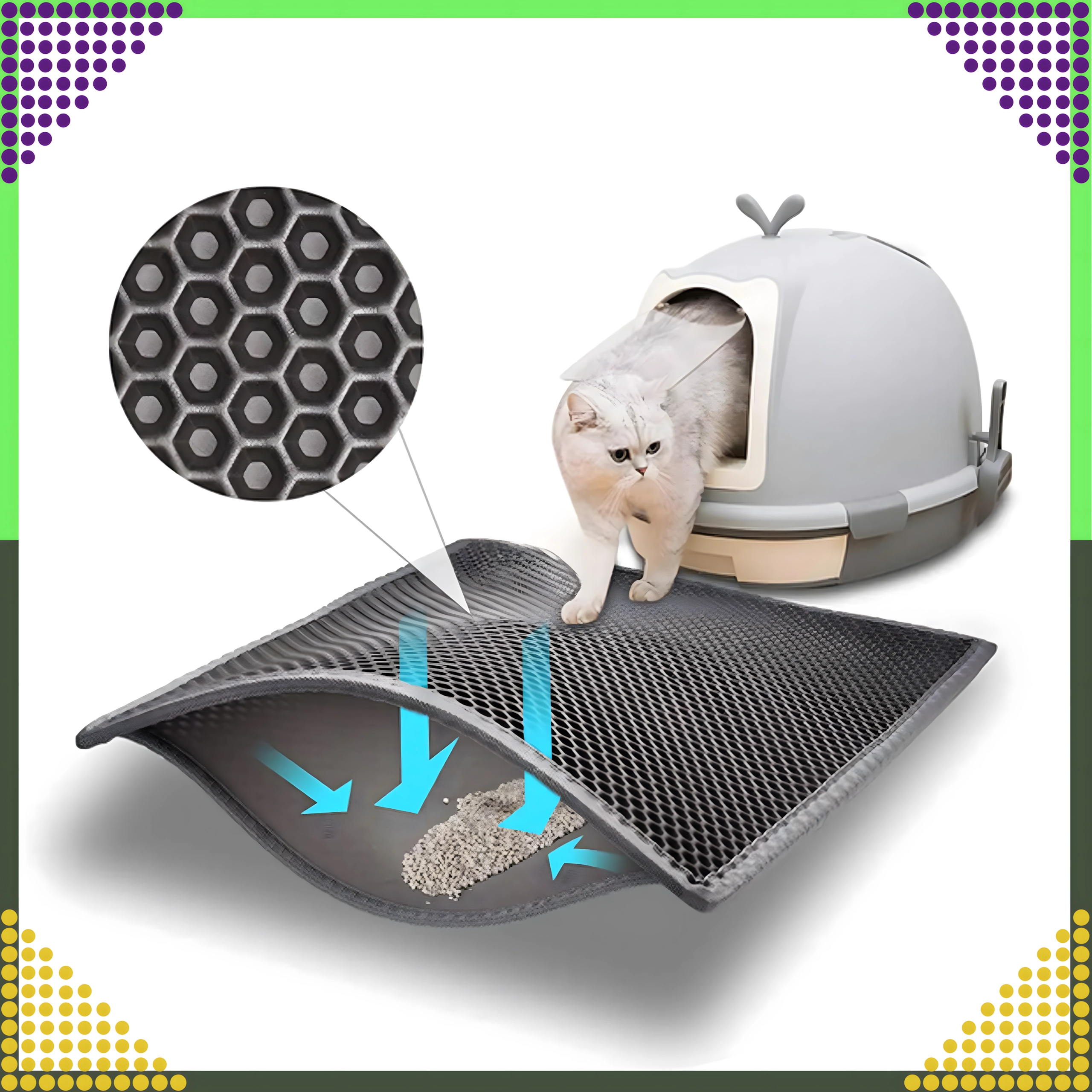Praktická a hygienická podložka s dvojitou vrstvou je navržena tak, aby zachytila drobky steliva z tlapek ihned po odchodu z toalety. Horní voštinová vrstva propouští granulky do spodní kapsy, kde se bezpečně shromažďují – jednoduše je poté vyprázdníte zpět do toalety nebo do koše. Díky protiskluzové spodní straně podložka neujíždí a drží stabilně na místě.