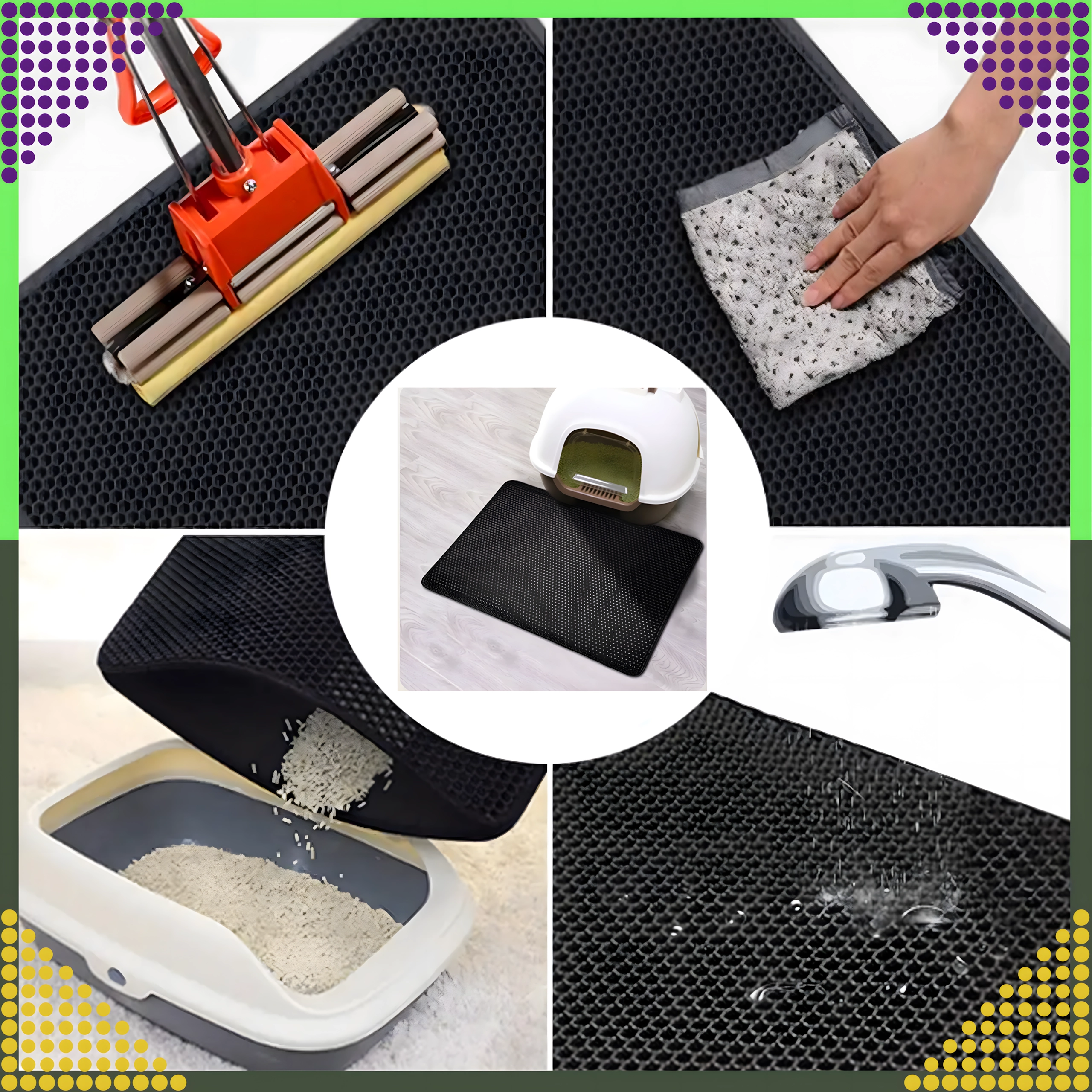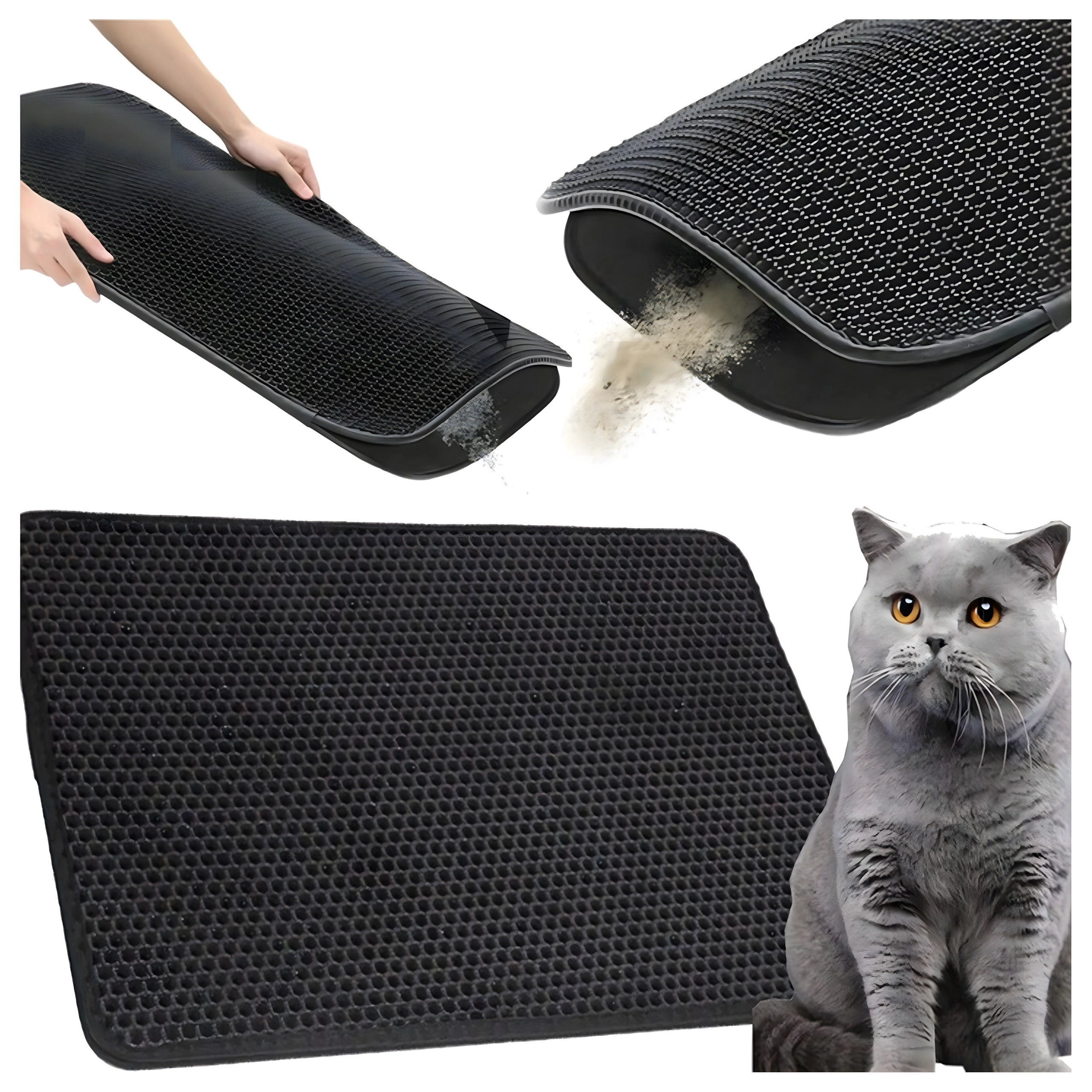 Materiál je odolný, voděodolný a snadno omyvatelný – nečistoty lze vysypat, vyklepat, vysát nebo opláchnout vodou. Velikost XXL 60 × 45 cm poskytuje širokou plochu pro pohodlný výstup a hodí se ke všem běžným typům kočičích toalet.