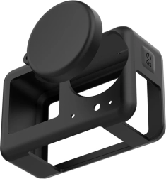 Součástí je odnímatelná krytka objektivu pro ochranu skla před prachem, škrábanci a nárazy. Díky odolnému, nedeformujícímu se silikonu pouzdro účinně tlumí drobné pády a nárazy, zároveň zachovává přístup k tlačítkům, portům i montážním otvorům. Přiložená šňůrka na zápěstí a očko pro uchycení umožňují bezpečné a pohodlné nošení kamery.