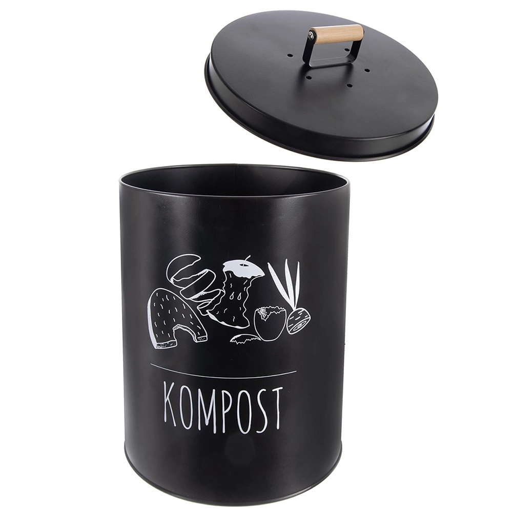 Robustní kovové provedení v černé barvě zajišťuje dlouhou životnost a odolnost při každodenním používání. Těsná poklice minimalizuje šíření zápachu a brání hmyzu v přístupu, zatímco dřevěné madlo usnadňuje manipulaci. Údržba je snadná – stačí otřít vlhkým hadříkem.