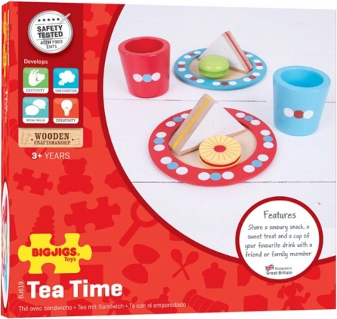 Tato půvabná dřevěná čajová sada s puntíky zve ke společnému „čaji o páté“. Děti si vyzkouší servírování, zdvořilost i sdílení, a přitom si procvičí úchop a koordinaci rukou. Barevné detaily a promyšlené rozměry z ní dělají oblíbený doplněk do každé dětské kuchyňky.