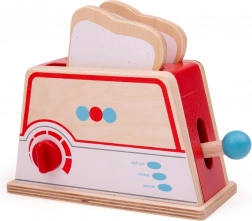 Děti si nastaví „propečení“ otočným voličem a spustí toustování páčkou. Po čase topinky vyskočí – ideální pro nápodobu skutečné přípravy snídaně.
