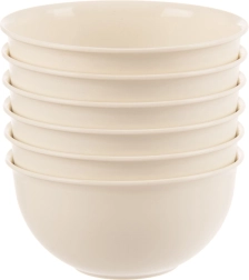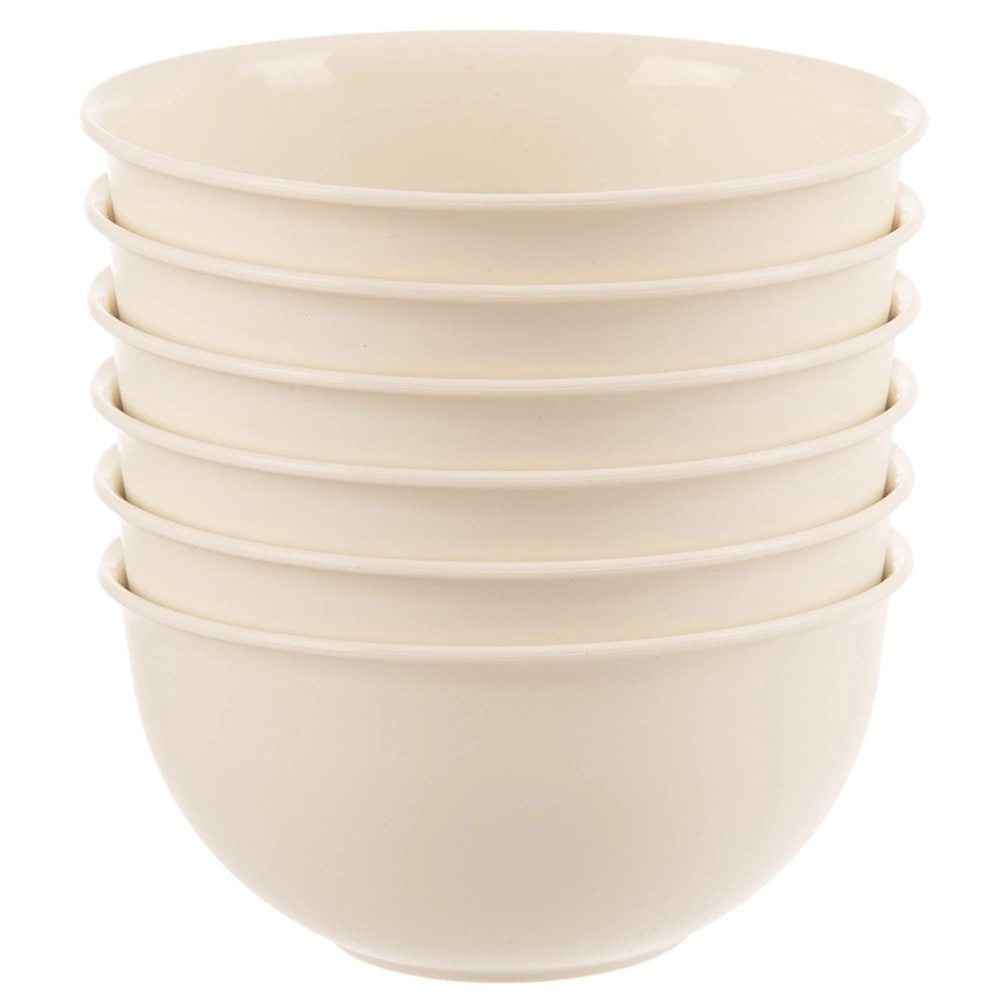 Sada 6 plastových misek SANDY v elegantní krémové barvě spojuje odolnost a nízkou hmotnost. Každá miska má rozměr 13 × 6 cm a objem 500 ml – ideální velikost pro polévky, cereálie, saláty i malé porce dezertů. Díky hladkému povrchu se skvěle čistí a minimalistický design zapadne do každé kuchyně.