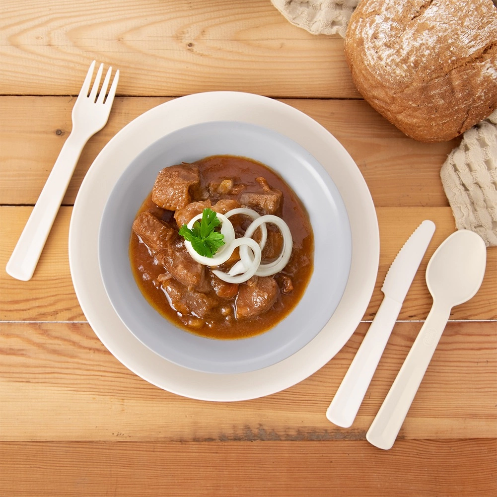 Jemné zoubky usnadňují krájení pečiva a měkkých jídel, zaoblená špička je bezpečná pro děti i na cesty.