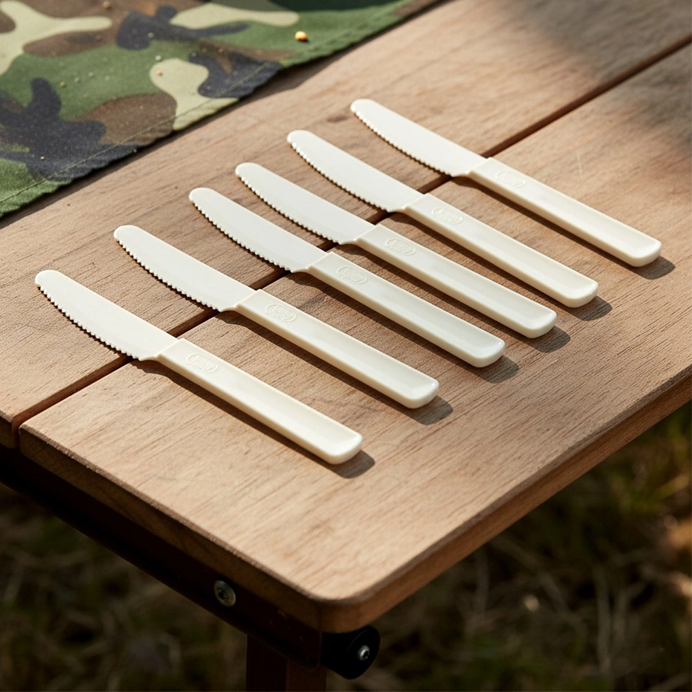 Sada 6 plastových nožů SANDY je ideální pro každodenní použití i pro pikniky, kempování a zahradní posezení. Nože jsou lehké, ale pevné a odolné proti prasknutí a deformacím. Bezpečně krájí měkčí potraviny jako pečivo, zákusky, ovoce či zeleninu.
