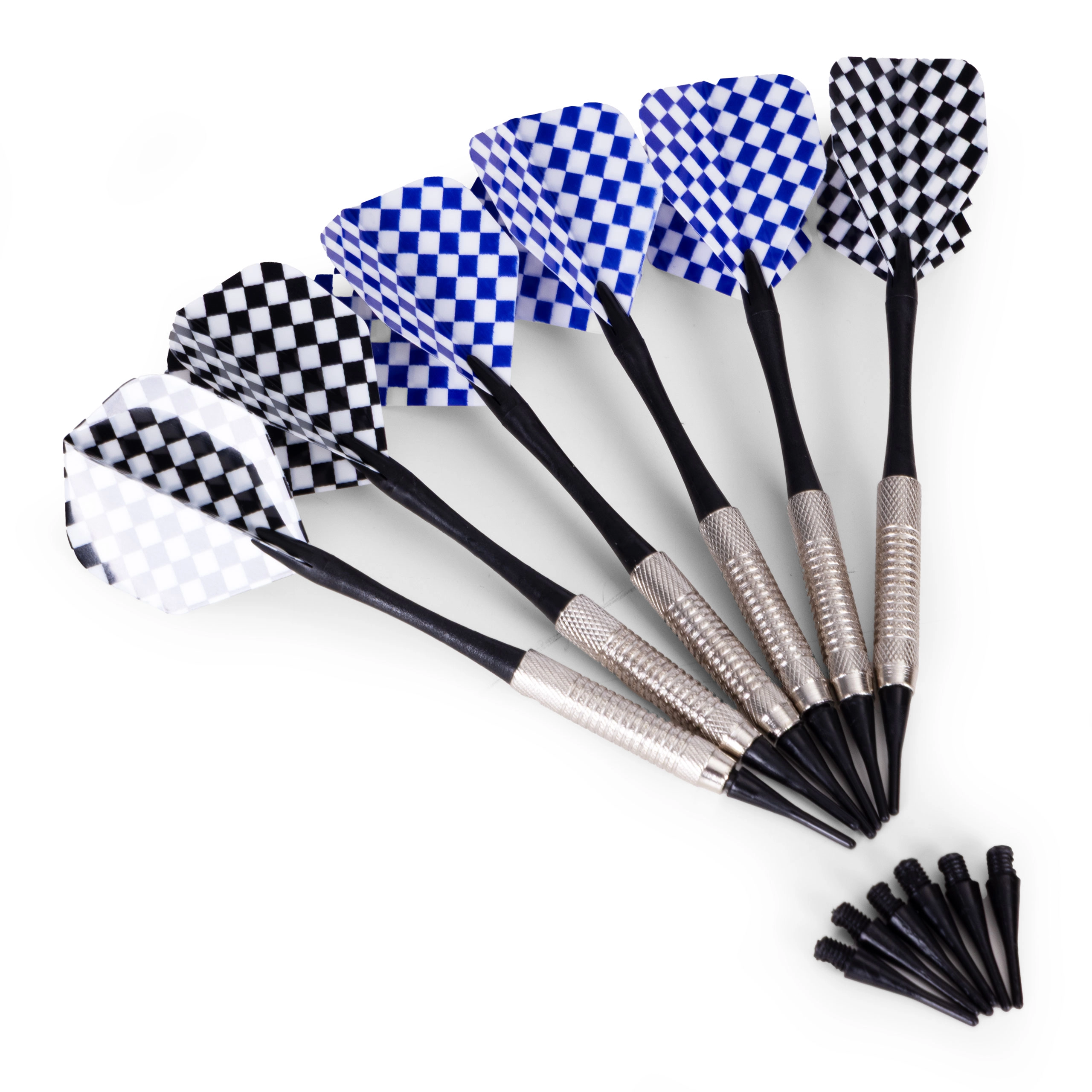 Vyvážené soft-tip šipky s dekorativními letkami zajistí pohodlný úchop a opakovatelné hody. Součástí je i montážní příslušenství.