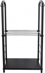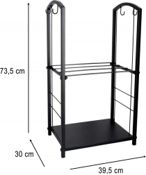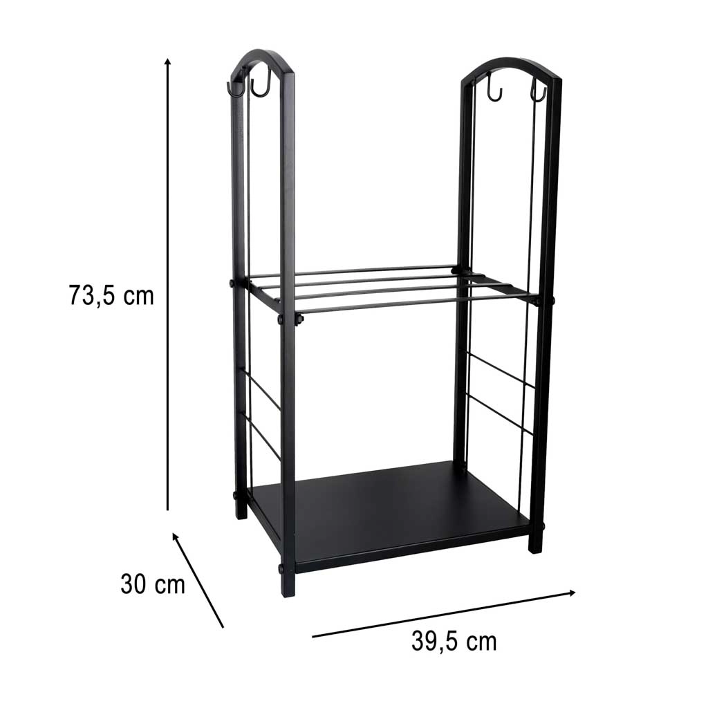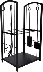 - Pořádek u krbu díky dvěma policím a háčkům na nářadí