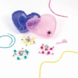 1 přívěsek Disney, 1 pletená šňůra, 11 korálků, krabička ve tvaru srdce, klíč, 40stránková brožura, návod