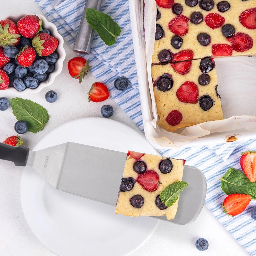 Ideální na pánev i plech – od omelet a placek po lasagne, pizzu a křehké dezerty. Snadno se čistí v myčce.