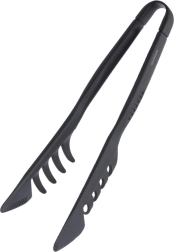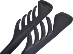 Univerzální kuchyňské kleště BLACKLINE z odolného termoplastu jsou ideální pro vaření i grilování. Kombinují funkci kleští a obracečky, takže s jedním nástrojem můžete pohodlně nabírat, otáčet a servírovat jídlo. Jsou šetrné k nepřilnavému nádobí, odolají teplotám až 200 °C a lze je mýt v myčce.