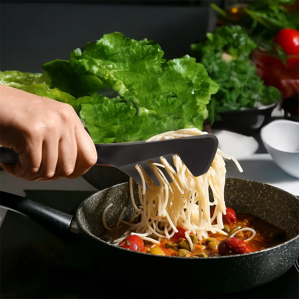 Profilované koncovky se zoubky spolehlivě drží těstoviny, zeleninu i maso. Ideální pro nabírání špaget a otáčení křehkých surovin bez poškození.