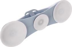 Robustní tělo z kvalitního plastu v bílo–šedém provedení zajišťuje stabilní a pohodlný úchop. Tři silné přísavky drží pevně, zatímco integrovaný háček nabídne místo na houbičku či žínku a udrží koupelnu přehlednou.