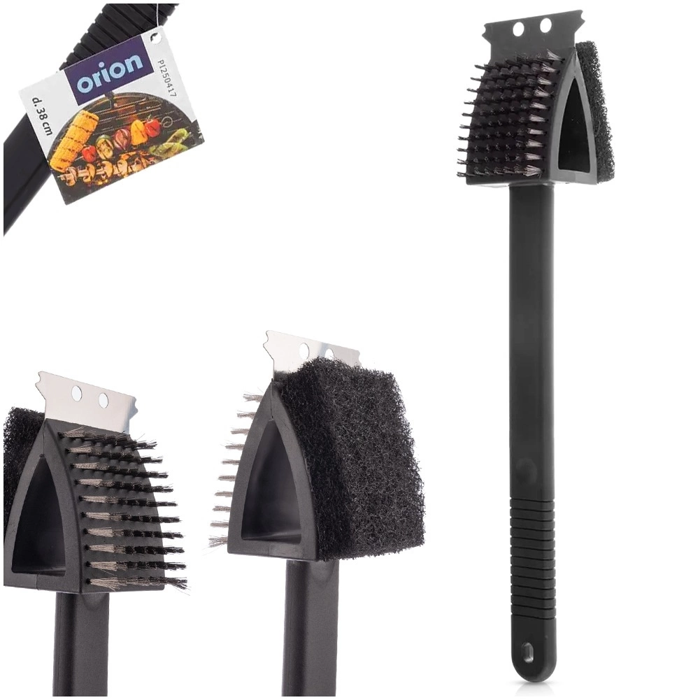Univerzální kartáč na gril 3v1 s délkou 38 cm kombinuje ocelové štětiny, škrabku a čisticí houbičku pro rychlé odstranění připálenin, mastnoty a nečistot z grilovacích roštů. Odolná nerezová ocel a ergonomická rukojeť zajistí pohodlné a efektivní čištění po každém grilování.