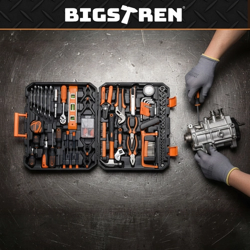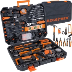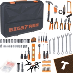 Praktická sada nářadí BIGSTREN v pevném kufru spojuje vše, co doma i v dílně nejčastěji potřebujete. Obsahuje 168 dílů – klíče, hlavice, bity, šroubováky, kleště i doplňky – a díky přehledné vložce má každý kus své místo. Nechybí ráčna 3/8” se 72 zuby pro plynulé utahování, magnetické koncovky pro jistotu při práci a odolné části ze chrom‑vanadiové oceli (CrV).