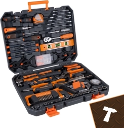 S touto univerzální sadou budete připraveni na montáž nábytku, opravy v domácnosti i drobný servis auta či kola. Robustní plastový kufr s madlem udržuje pořádek a umožňuje rychlé nalezení správného nástroje. Ergonomické, pogumované rukojeti zajišťují jistý úchop a pohodlí při delší práci.