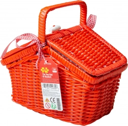 Okouzlující čajová sada v červeném proutěném koši přináší radost z hraní. Obsahuje čtyři šálky, talířky, konvici s lžičkami, ideální pro dětské čajové dýchánky doma i na cestách.