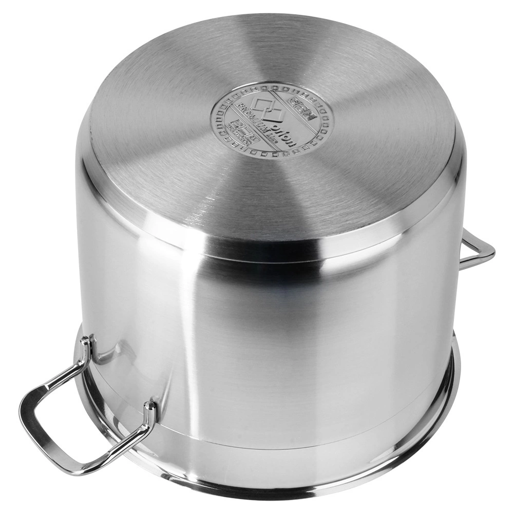 Vyrobeno z ušlechtilé oceli 18/10 s matným povrchem a lesklým horním pásem. Hrnec je pevný, těžký a připravený na každodenní provoz.