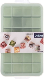 Praktická forma na led s průhledným víčkem v pastelově zelené barvě pro snadné a čisté mrazení. Díky elastickému materiálu se kostky ledu vyjímají bez námahy, víčko zabraňuje rozlití a pohlcování pachů a forma najednou připraví až 24 kostek. Vhodná do myčky nádobí a ideální pro led, šťávy, sorbety i vývary.