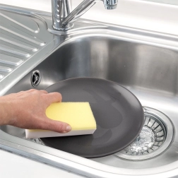 Stačí navlhčit vodou a houbička si poradí s připáleninami i mastnotou na talířích, hrncích a pánvích. Šetří čas, peníze i životní prostředí.