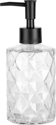 Praktický a estetický dávkovač na tekuté mýdlo nebo prostředek na nádobí kombinuje kvalitní čiré sklo s matně černou pumpou. Díky reliéfnímu povrchu skvěle padne do ruky a dodá umyvadlu či kuchyňské lince moderní akcent.