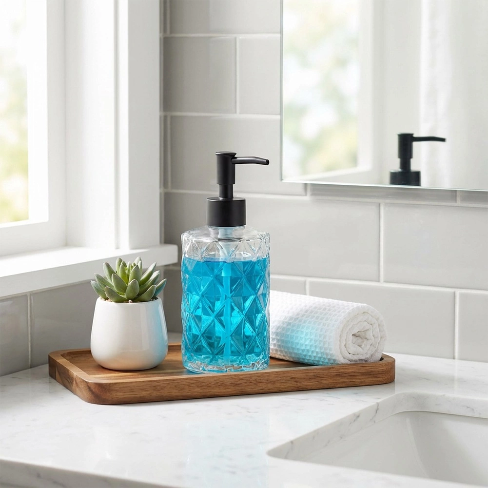 Objem 330 ml je ideální pro každodenní použití. Průhledné tělo umožňuje okamžitou kontrolu hladiny, takže vždy víte, kdy doplnit. Dávkovač se hodí do interiérů ve stylu moderním, klasickém, loft i industriálním.