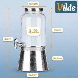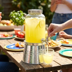 Užijte si osvěžení s elegantním dávkovačem nápojů, který zaujme na každém stole. Díky objemu 3,2 l snadno připravíte limonádu s ovocem, ledový čaj nebo domácí bowli. Vyvýšený stojan zajišťuje pohodlné čepování přímo do sklenic, zatímco šroubovací nerezové víko chrání nápoj před nečistotami a hmyzem.